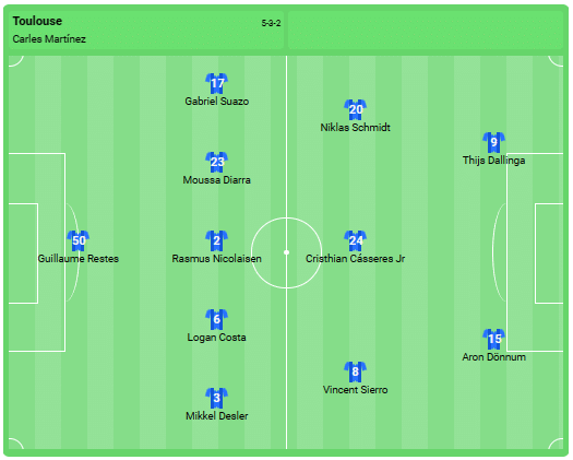 Toulouse kezdőcsapata: