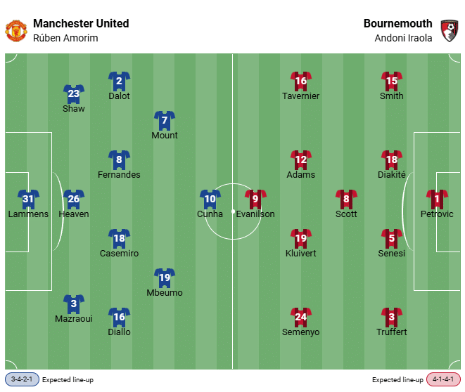 Különösen az elmúlt hetekben a Red Devils jó érveket gyűjtött, hogy a Manchester United és a Bournemouth mérkőzése előtt előrejelzést tegyen a korábbi BL-győztesre. Öt győzelem, három döntetlen és csak egy vereség díszíti az utolsó kilenc PL-mérkőzés statisztikáját. Különösen a legutóbbi két idegenbeli mérkőzés a Crystal Palace (2:1) és a Wolverhampton (4:1) ellen teljesen a portugál edző, Amorim tervei szerint alakult, aki azonban továbbra is azzal küzd, hogy játékosai otthon sokkal nehezebben tudják a kétségtelenül meglévő teljesítményüket a pályán is megmutatni.
