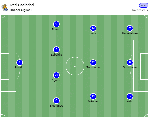 A Manchester Unitedhez hasonlóan a Real Sociedad is jócskán elmarad saját mércéjétől a bajnokságban. A baszkok a tizenegyedik helyen állnak a tabellán, és eddig mindössze 34 pontot sikerült begyűjteniük, ami azt jelenti, hogy csak outsiderek az európai kupaporondért folytatott versenyfutásban. A kék-fehérek legalább még ott vannak a spanyol Copa del Reyben, de nincsenek jó helyzetben, miután április elején az elődöntő visszavágóján 1-0-ra kikaptak a Real Madrid otthonában. Az előző héten a United ellen elért 1-1-es döntetlen azonban hitet adott Imanol Alguacil edző csapatának