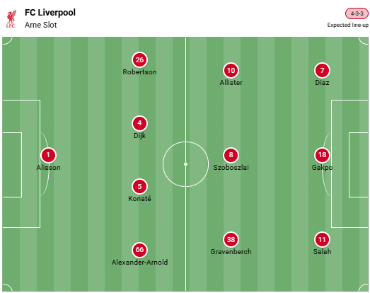 A szerdai mérkőzésről legalább négy Vörösök-játékos fog hiányozni. A Liverpool valószínűleg nem változtat jelentősen a hétvégén a Newcastle United ellen kezdő XI-hez képest. A Vörösök a legutóbbi négy idegenbeli bajnoki mérkőzésükből csak egyet nyertek meg – vajon ez így is marad-e?