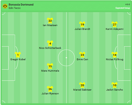 Formazione prevista per il Dortmund: