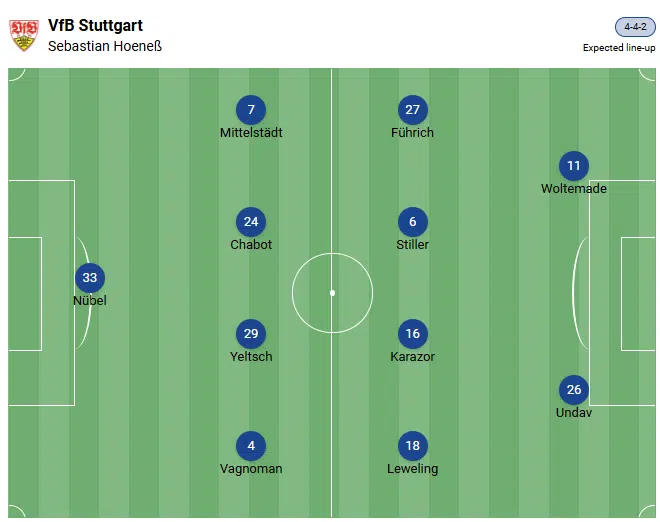 Inoltre, alcuni giocatori devono cogliere l’occasione per raccomandarsi per un posto nella finale di Coppa grazie a prestazioni convincenti. Con l’FCA arriva sul Neckar un ospite gradito. Tutte le ultime cinque partite casalinghe contro i bavaresi sono state vinte dalla squadra di Hoeneß. Per questo motivo, domenica prossima ci aspettiamo la prossima vittoria del VfB contro gli ospiti leggermente indeboliti.