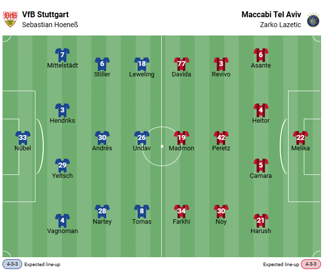 Il ruolo di favorita spetta chiaramente alla squadra di Hoeneß, poiché il Maccabi Tel Aviv, penultimo in classifica, arriva ora nel Baden-Württemberg. Gli israeliani hanno conquistato un punto nella prima giornata contro il PAOK Salonicco (0-0), ma poi hanno perso quattro partite consecutive con un punteggio complessivo di 1-14.