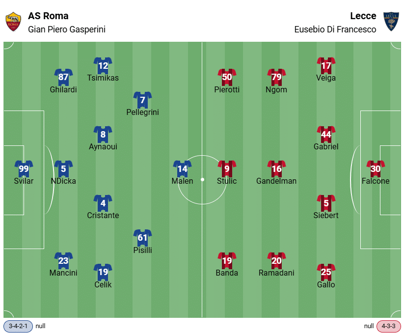 Zwycięstwo u siebie pozwoliłoby AS Roma dotrzymać kroku Como i Juventusowi Turyn, dzięki czemu szanse na Ligę Mistrzów nie są jeszcze stracone. Lecce natomiast ma tylko trzy punkty przewagi nad strefą spadkową i prawdopodobnie zadowoliłoby się remisem w Rzymie.