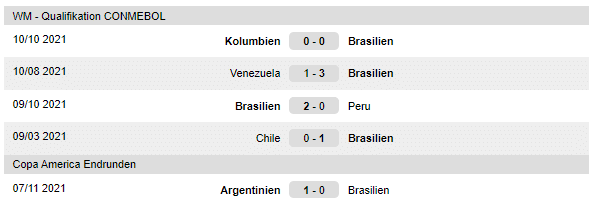 Brazylia ma również przewagę w bezpośrednich porównaniach we wszystkich rozgrywkach, choć Urugwaj mógł świętować znacznie częściej. W 77 meczach międzynarodowych dwukrotni mistrzowie świata odnieśli 20 zwycięstw, podczas gdy Brazylia mogła świętować 37 razy.