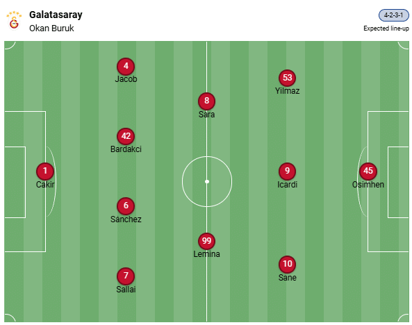 O Galatasaray Istambul está invicto a nível nacional após onze jornadas (nove vitórias, dois empates) e lidera a tabela da Süperlig com quatro pontos de vantagem sobre o Fenerbahçe. No entanto, no ensaio geral contra o Trabzonspor, no sábado, houve «apenas» um empate 0 a 0. Enquanto isso, internacionalmente, houve uma explosão de desempenho. A derrota por 5 a 1 em Frankfurt foi seguida por vitórias contra o Liverpool (1 a 0) e o Bodö/Glimt (3 a 1).
