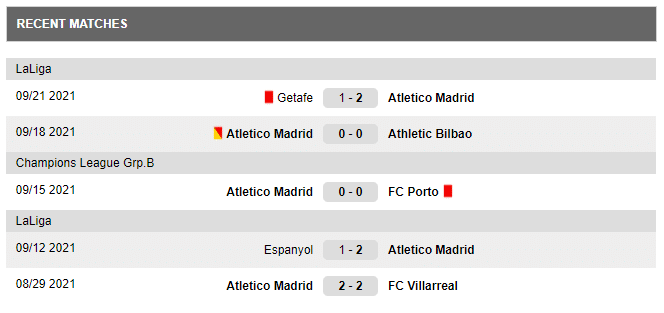 Atletico nu a fost deloc convingătoare în ultimele cinci meciuri, uneori a avut probleme serioase – și la un fir de păr, a reușit în cel mai bun caz o remiză din toate cele cinci partide. Atletico a marcat câteva goluri importante în ultimele minute sau chiar secunde. Au remizat 2-2 cu Villarreal, unde Atletico a egalat la propriu la fluierul final, grație unui autogol curios al lui Villarreal în minutul 95.