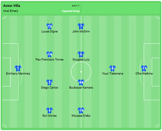 Antrenorul principal Unai Emery va fi lipsit de cel puțin trei jucători din cauza accidentărilor pentru confruntarea din campionat împotriva tunarilor. Pe lângă Traore, Mings și Buendia se află în prezent pe lista de accidentați a lui Villans.