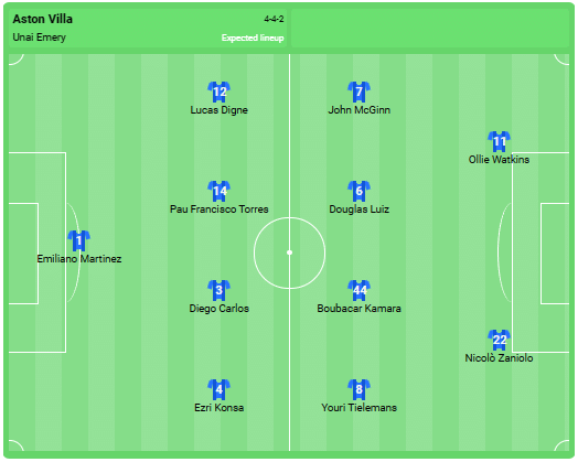 Alinierea preconizată a lui Aston Villa: