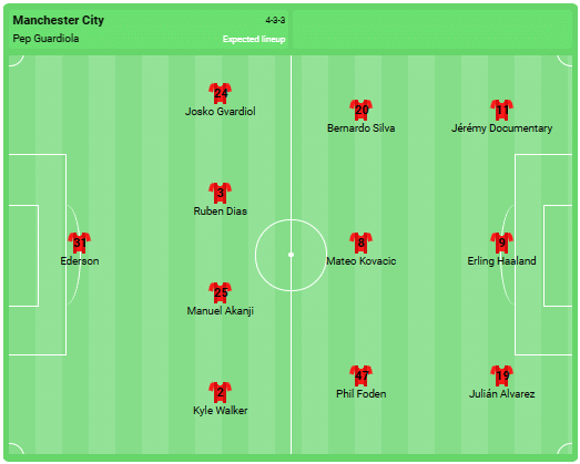Alinierea preconizată a lui Manchester City: