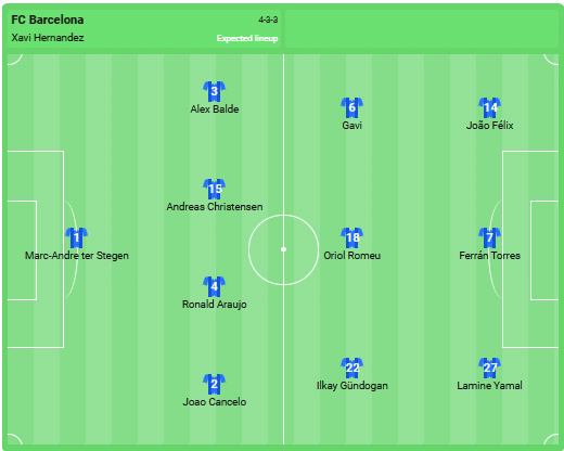 Scena internațională a venit însă și la momentul potrivit pentru Barcelona, deoarece numeroșii jucători accidentați au avut la dispoziție două săptămâni fără meci pentru a continua să-și vindece rănile. În Robert Lewandowski (accidentare la gleznă), Pedri (accidentare musculară), Frenkie de Jong (entorsă la gleznă), Jules Kounde (accidentare la genunchi) și Raphinha (întindere la coapsă), cinci jucători titulari importanți sunt absenți în prezent.