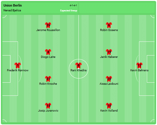 Alinierea preconizată a lui Union Berlin: