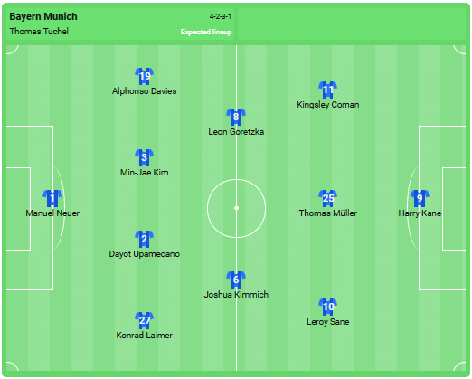 Formația previzionată a lui Bayern: