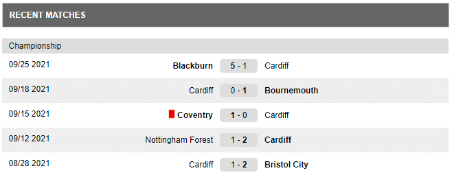 Compararea directă dintre cele două echipe este relativ echilibrată. Până acum, Cardiff a câștigat 18 meciuri, 15 meciuri s-au încheiat la egalitate și 23 de meciuri au fost câștigate de West Brom. Ultima dată când cele două s-au întâlnit a fost în sezonul 2019/20, când s-au înregistrat două victorii acasă. West Brom s-a impus cu 4-2 atunci, Cardiff cu 2-1.