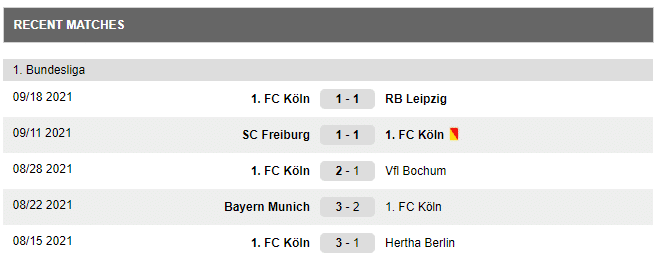 Echipa noului antrenor Steffen Baumgart a obținut opt puncte din douăsprezece posibile în celelalte patru partide. Köln a avut astfel cel mai bun start de campionat din ultimii cinci ani și ocupă în prezent locul șapte în clasament.