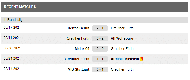 Ultimele meciuri jucate de Fürth: