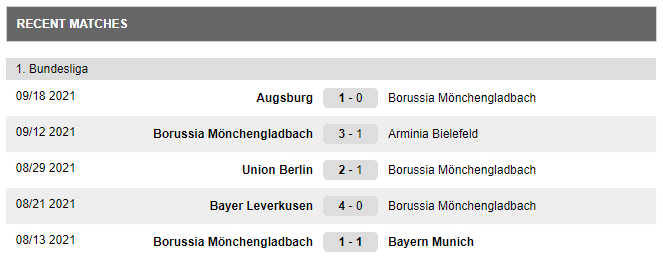 Dintr-un punct de vedere obiectiv, însă, acest lucru nu este o surpriză, deoarece Adi Hütter a avut cel mai slab start de la Dick Advocaat în 2004 Doar Holger Fach a marcat mai puține puncte în primele sale meciuri ca antrenor al lui Gladbach, în 2002/03. După cinci zile de joc, în palmares se află doar patru puncte. Doar meciul de acasă cu Arminia Bielefeld a fost câștigat cu 3:1. De asemenea, în prima zi a remizat acasă cu FC Bayern, scor 1-1.