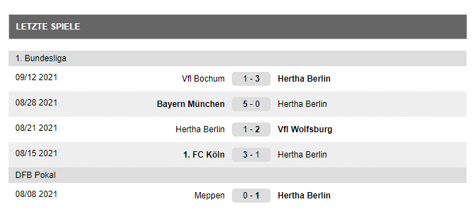 Hertha – Fürth Comparație directă / Bilanț H2H