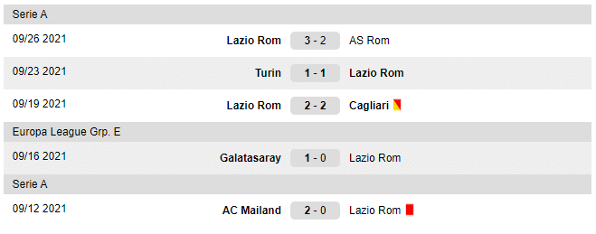 Ultimele meciuri jucate pentru Lazio Roma: