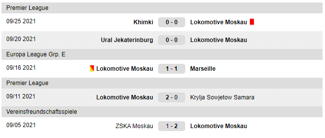 Ultimele meciuri jucate de Lok Moscova: