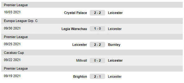 Ultimele meciuri jucate de Leicester: