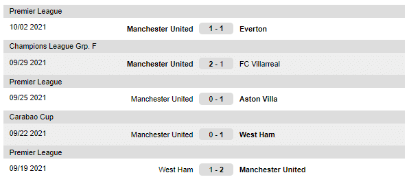 Ultimele meciuri jucate de Manchester United: