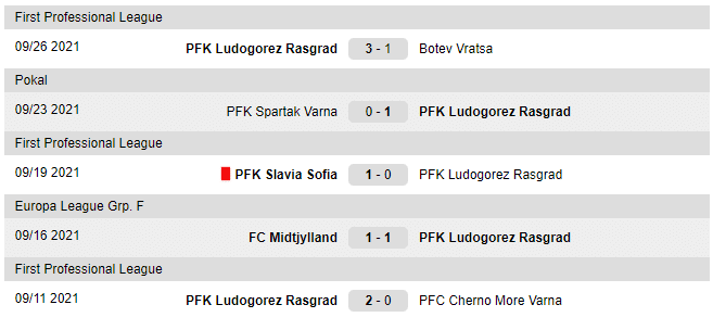 Ultimele meciuri jucate de Ludogorets: