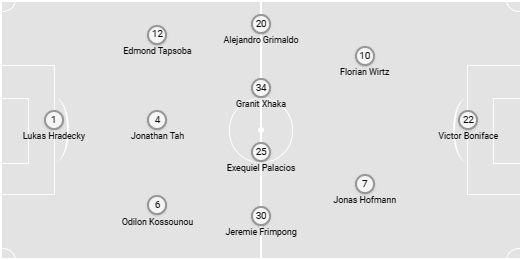 Bayer Leverkusen (formație așteptată) 3-4-2-1