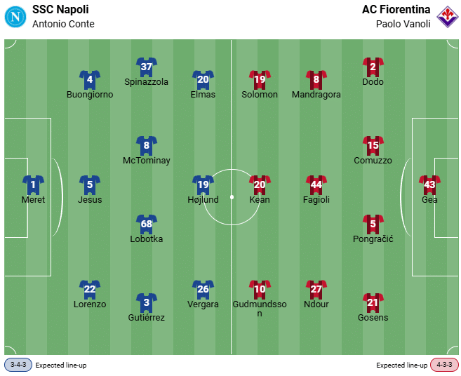 Clubul emblematic din Toscana se află în continuare pe un loc de retrogradare directă, motiv pentru care, în meciul dintre Napoli și Fiorentina, pronosticul pentru victoria pe teren propriu a Partenopei pare a fi fără alternativă, în ciuda recentelor eșecuri. La urma urmei, și Viola a pierdut ultimele două meciuri oficiale consecutive.