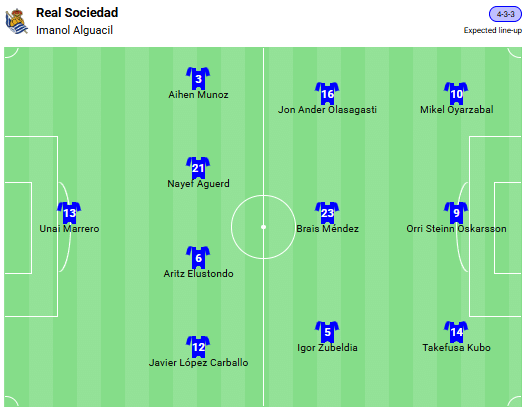 Alinierea preconizată a Real Sociedad: