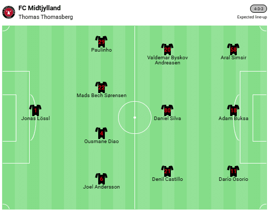 Alinierea preconizată pentru Midtjylland: