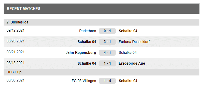 Germania Schalke – Statistici & forma actuală