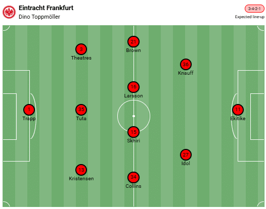 Above all, defensively, the Hessians have not made a particularly good impression recently. To make matters worse for Thursday, the recently recovered defensive leader Robin Koch is once again condemned to watching due to a concussion. This in turn means that Rasmus Kristensen will move to the back three and that two players with virtually no international experience, Nathaniel Brown and Nnamdi Collins, are expected to start in the wing-back positions. It seems unlikely that Kevin Trapp will keep a clean sheet for SGE.