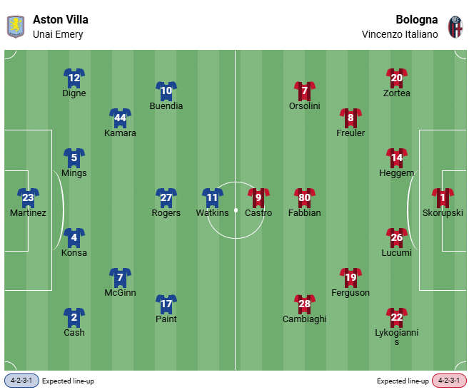 They lack creativity in attack and support for center forward Ollie Watkins. Emery’s players have only scored 0.07 xG per shot in the English top flight – also the lowest figure in the national competition. We expect Bologna to play a deep block that will hardly allow any shots on goal.