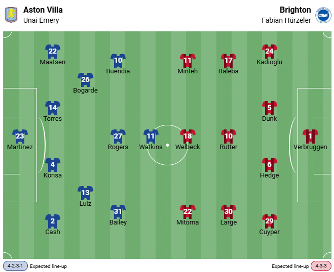 Which players will be able to get on the scoresheet? For the hosts, Morgan Rogers and Ollie Watkins come to mind, both of whom have scored eight times already. Watkins in particular could score on Wednesday, as Brighton is something of a favorite opponent for the 30-year-old striker. He has already scored nine times against Brighton.