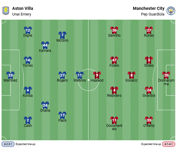 Aston Villa and Manchester City face each other in the Premier League on Sunday afternoon. The Sky Blues have won their last three PL games in a row and are now in 2nd place in the table with 16 points. The Villans’ PL winning streak also stands at three wins, putting them in 11th place in the table.