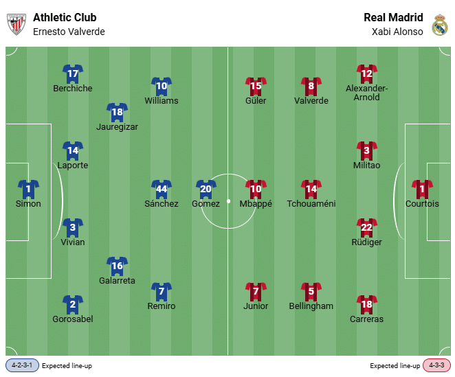 The Basques have often posed a threat to the White Ballet from Madrid in recent seasons, especially at the San Mames Stadium. Bilbao won two of their previous four home games against the current second-placed team. The home side lost the other two matches without scoring.