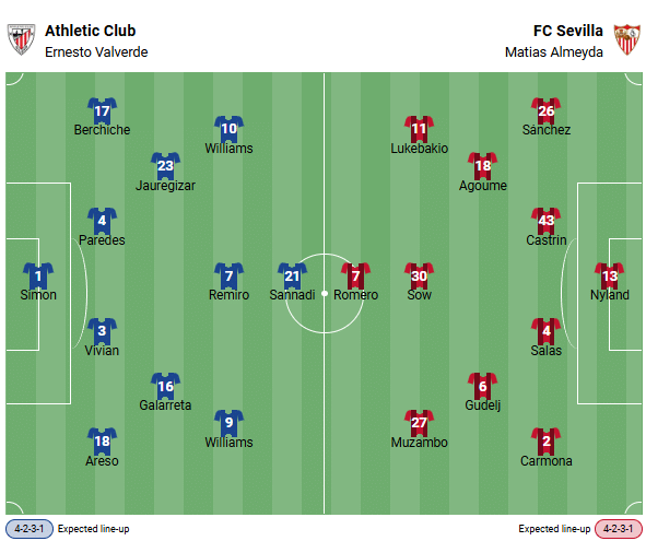 Compared to the “Nervionenses,” the hosts can be described as fundamentally stronger, but currently, the difference in class is less pronounced in our eyes. Bilbao still seem to be searching for a settled formation, while the visitors from the Ramón Sánchez-Pizjuán Stadium appear to be a step ahead. Above all, the farce surrounding superstar Nico Williams seems to have left its mark in the Basque Country.