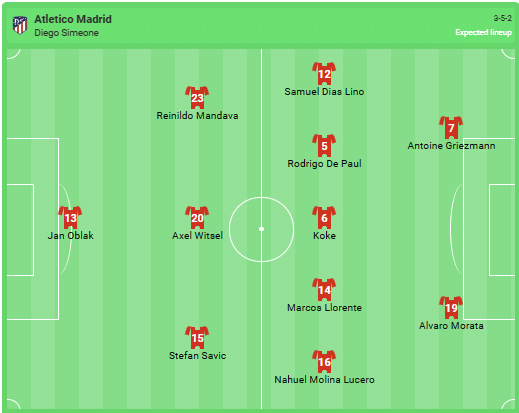 Predicted line-up of Atletico Madrid: