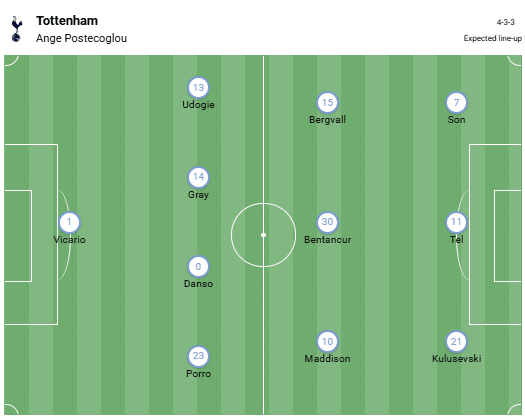 With 80 goals in 42 games (Ø 1.91), the guests rarely go without scoring themselves. In fact, that has only happened six times this season. This means that in 86% of competitive matches, Ange Postecoglou’s team have scored at least one goal. However, the rate is slightly worse away from home, at “only” 81%. But that doesn’t change the fact that Spurs have five players in their squad, Johnson, Solanke, Kulusevski, Son and Maddison, who have already scored over 15 points. That is, of course, a huge number and makes Tottenham almost unpredictable.