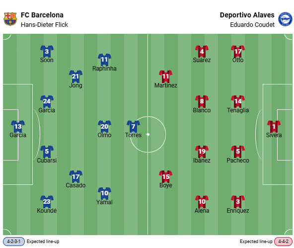 The betting odds from the best bookmakers are clearly and unmistakably in favor of Barcelona against Alaves. No wonder, because not only has FCB not lost any of its last 16 competitive games against the Basques (14 wins, two draws), but Hansi Flick’s team has also been absolutely flawless in La Liga in 2025/26 in front of its home crowd, winning all six home games with a goal difference of 20:3. The Babazorros, on the other hand, have lost three of their last four league games (one win) and have scored only two goals in six away games.