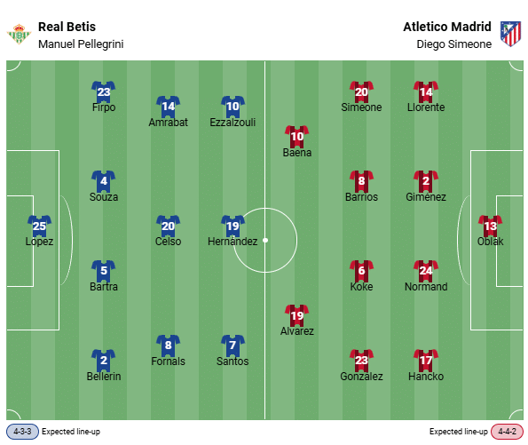 A total of 135 matches have already taken place between the two teams, with Atletico Madrid leading the head-to-head record very clearly with 72 wins. The Colchoneros have lost only one of their last twelve La Liga matches against Betis Sevilla (nine wins, two draws), but suffered a 0-1 defeat in their last away game in Andalusia exactly one year ago on October 27, 2024.
