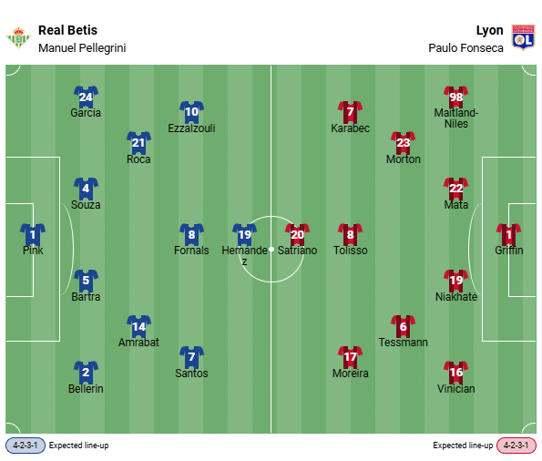 Two international competitive matches have taken place between the two teams so far, who clashed in the group stage of the Europa League in 2013/14. After the first leg in Andalusia ended in a goalless draw, Olympique Lyon recorded a 1–0 home win against Betis Sevilla in the second leg. The French side thus remained unbeaten in two games and without conceding a goal against the Verdiblancos.