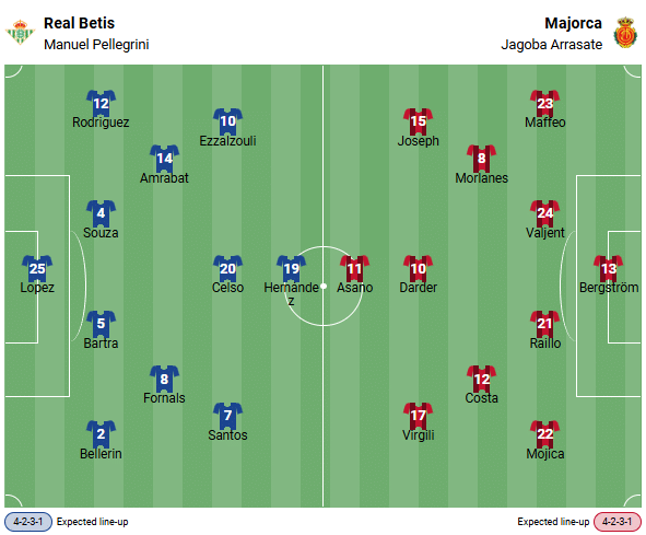 Betis has won six of its last seven games against the Balearic Islands team (6-0-1). However, the last home game against the team from Estadi de Son Moix in September last year ended in a 1-2 defeat.