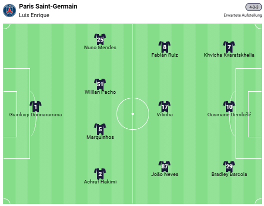 Luis Enrique will have just the one key player missing for the first leg, Zaire-Emery, through injury. The Parisians have no other personnel concerns at the moment. Ousmane Dembélé has been the top scorer in the current competition with four goals and one assist and is therefore also a possible scorer against Stade Brest.