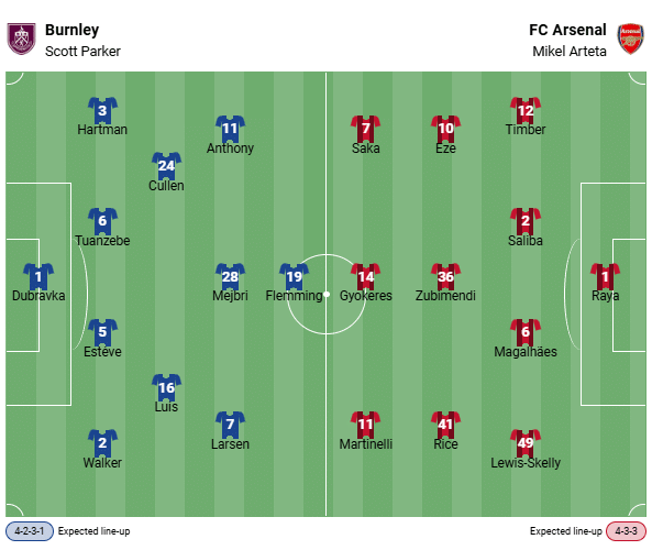Burnley and Arsenal have faced each other 98 times in total – 94 times in the Premier League, three times in the FA Cup, and once in the League Cup. Both the record and the goal difference clearly favor the Gunners: Arsenal have celebrated 48 victories, while Burnley have been successful 29 times and 21 encounters have ended in a draw. The Londoners also have a clear advantage in terms of goal difference – 166 goals to 113 underscore the dominance of Arteta’s team in direct comparison.