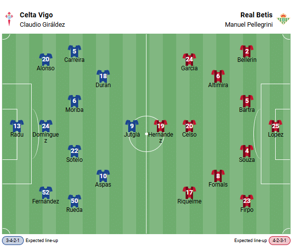 The two teams have met 68 times in La Liga so far. The Celts have won 25 times and the Green and Whites have been successful 27 times. Across all competitions, we have 74 games with a record of 25-22-27. Last season, the hosts won their home game 3-2.