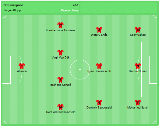 Predicted Liverpool line-up: