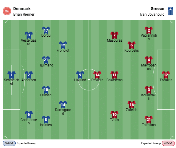 On the other hand, the Serbian head coach has a wealth of individual quality at his disposal in attack. Players such as Tzolis, Pavlidis, Ioannidis and top talent Karetsas are capable of creating and converting top-class chances at any time. That is precisely why my prediction for Denmark vs. Greece is that both teams will score.