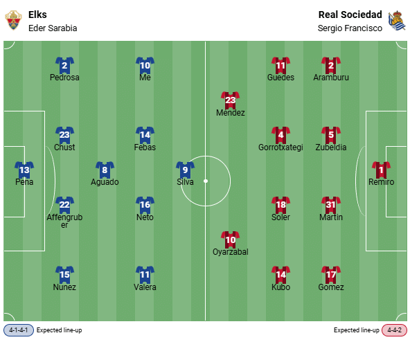 Elche – Real Sociedad Head-to-head comparison / H2H record